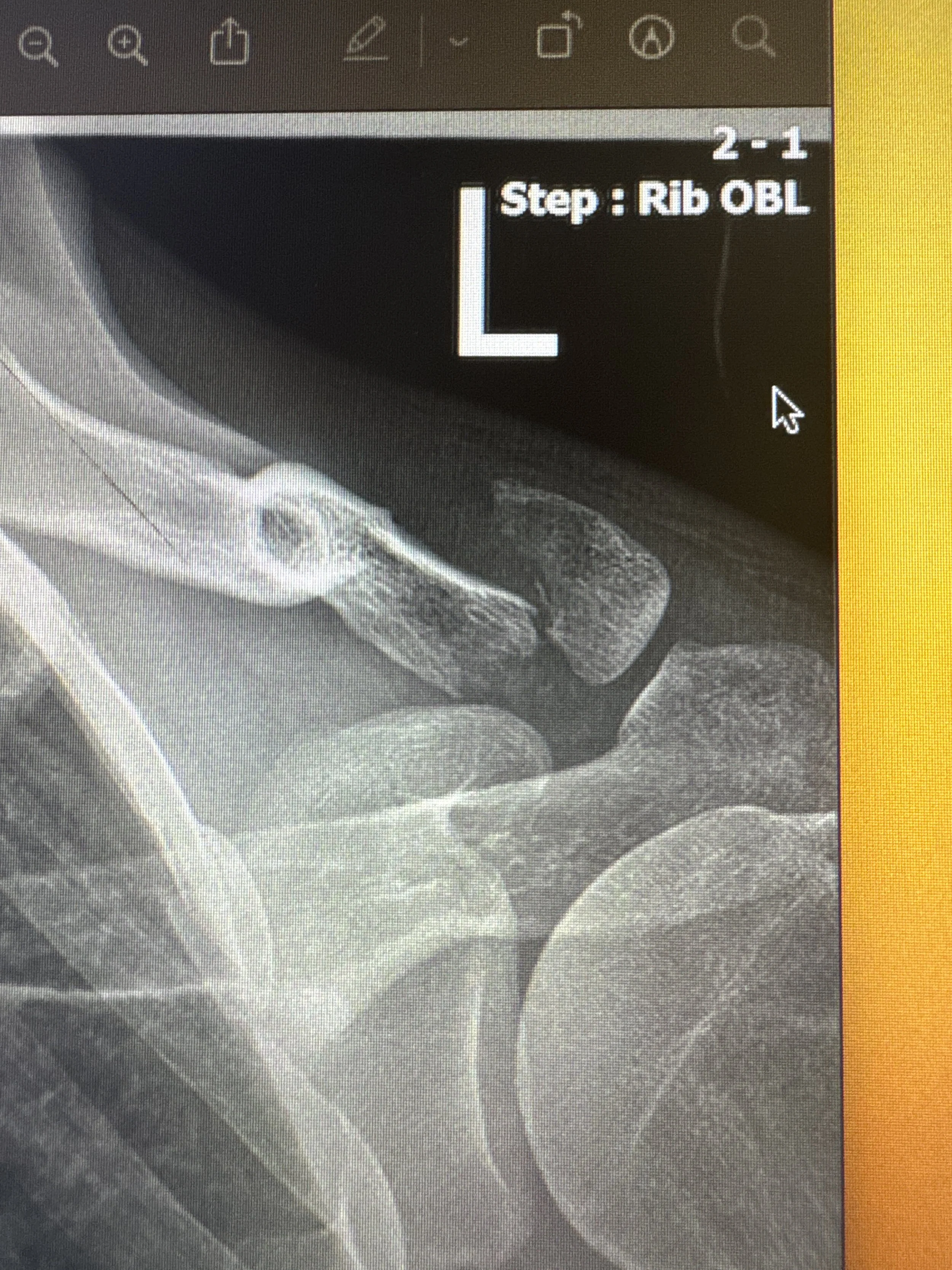 The X-rays confirmed what my body already knew. I had broken my clavicle. That grinding and shifting sensation on the bike had been the broken pieces moving against each other. The distal end was fully separated.